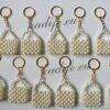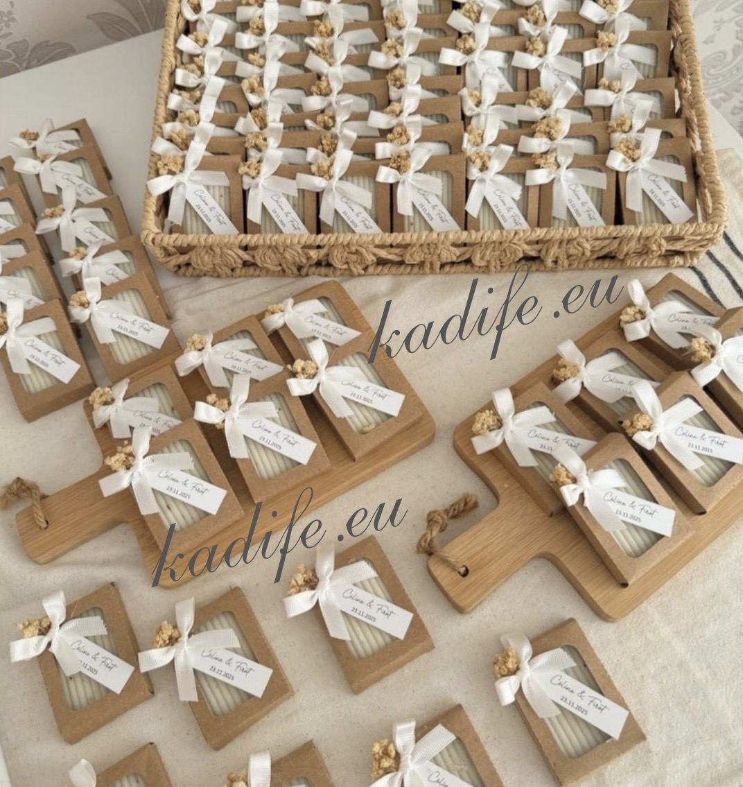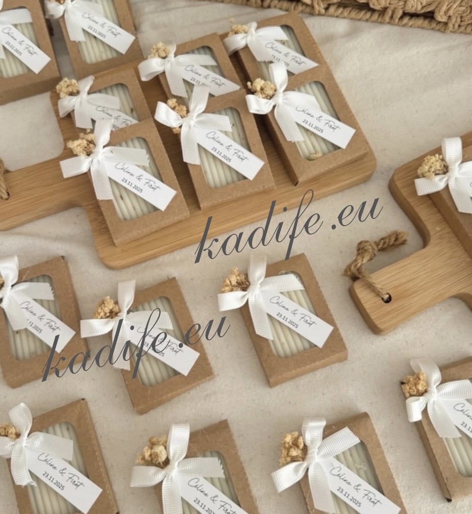 Мини сапунчета в естествена визия, декорирани с панделка и персонализиран стикер.