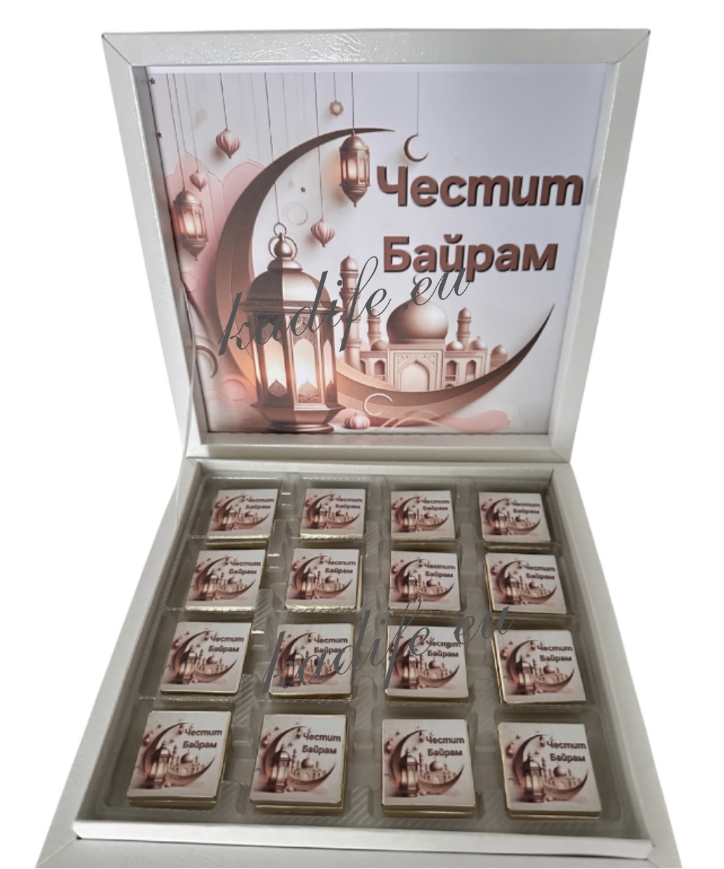 32броя белгийски шоколадчета с млечен вкус с дизайн за Байрям.