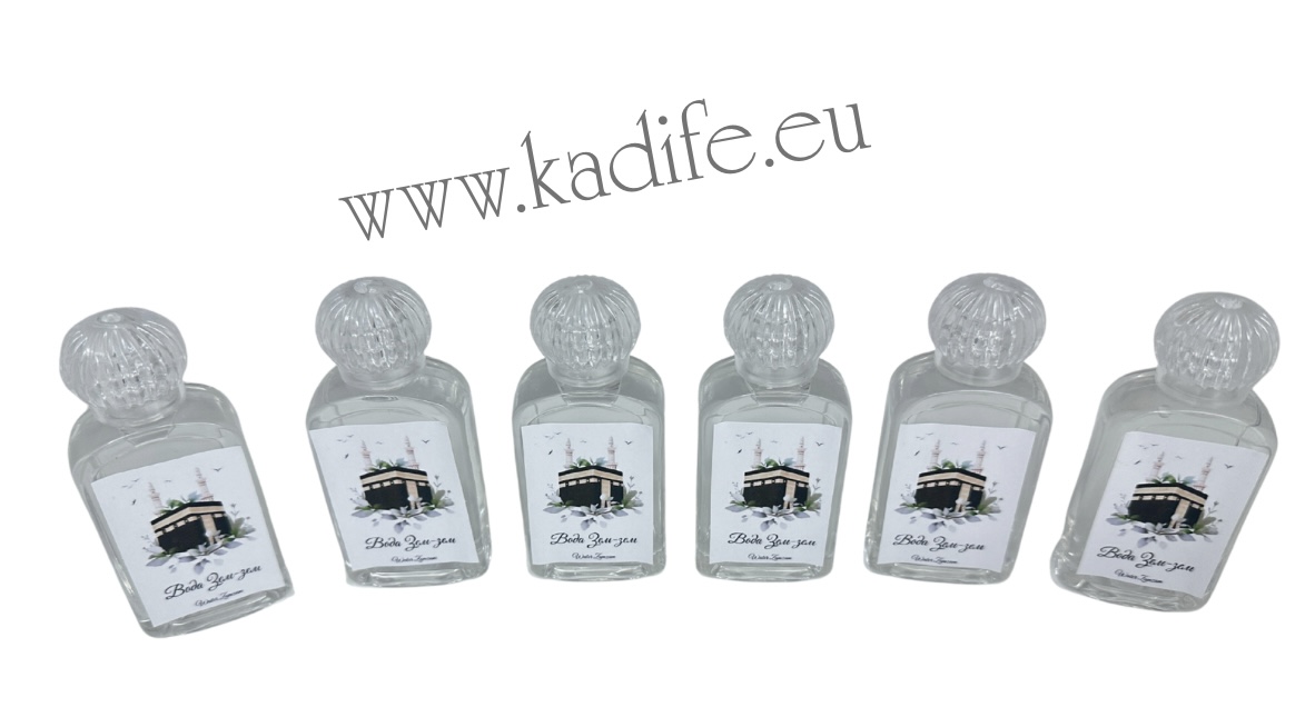 Вода Земзем в шишета от 50мл. подходящ подарък за Умра, Хадж, Рамазан или друг повод. Може да се добави и ваш текст.