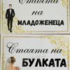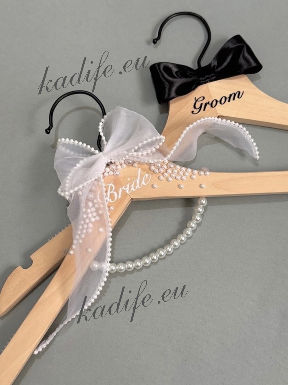 Комплект от стилни закачалки за младоженци. Може да се изработят с ваши имена и дата.