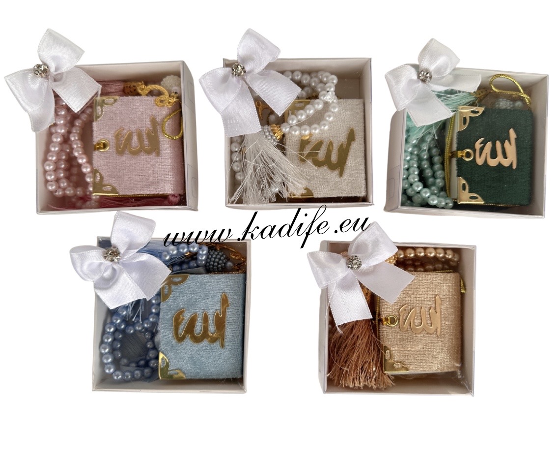 Бюджетен комплект, който е подходящ за подарък. комплекта съдържа теспих, малък Коран и подаръчна опаковка. Направете малък жест, който в същото време има много голяма стойност.