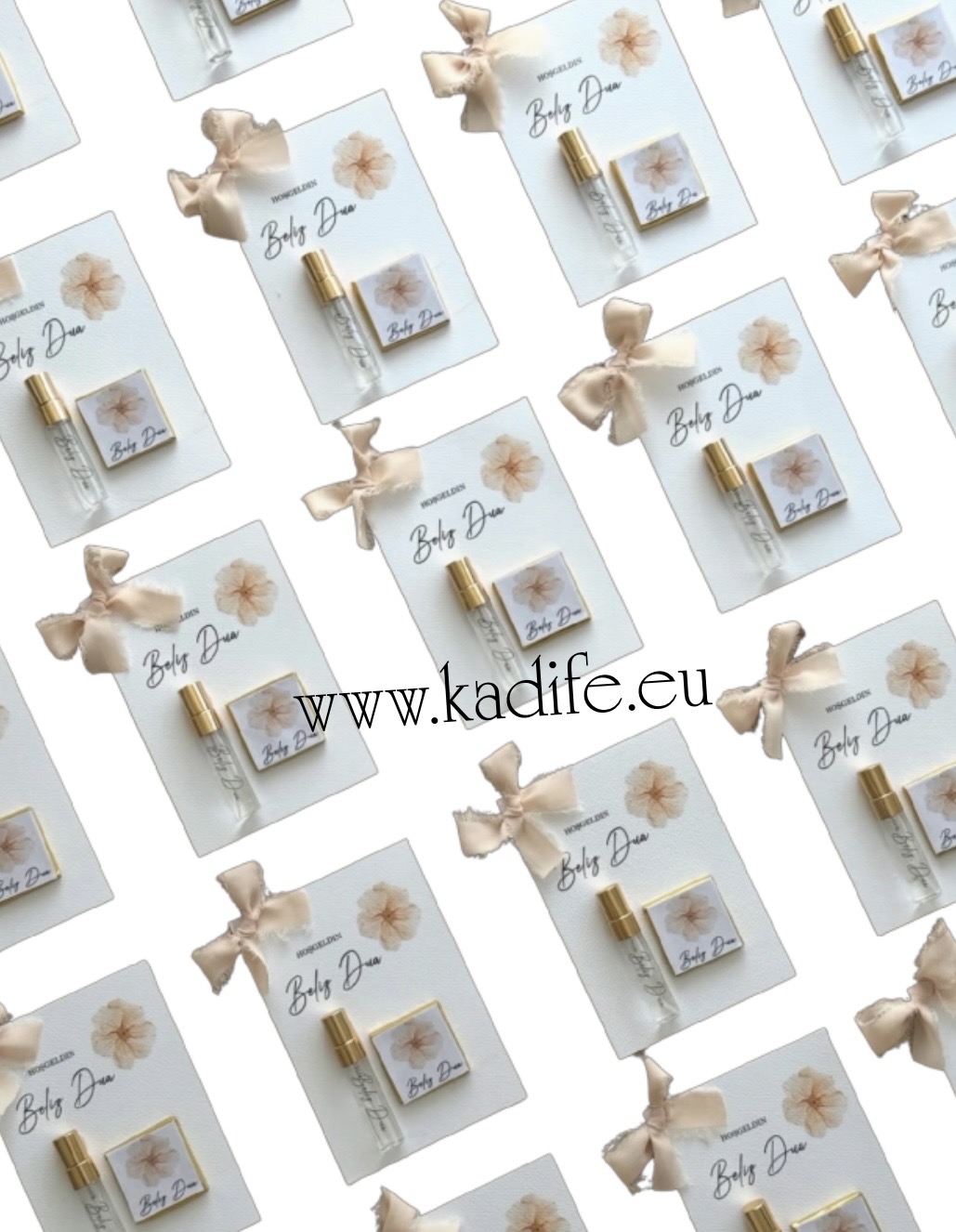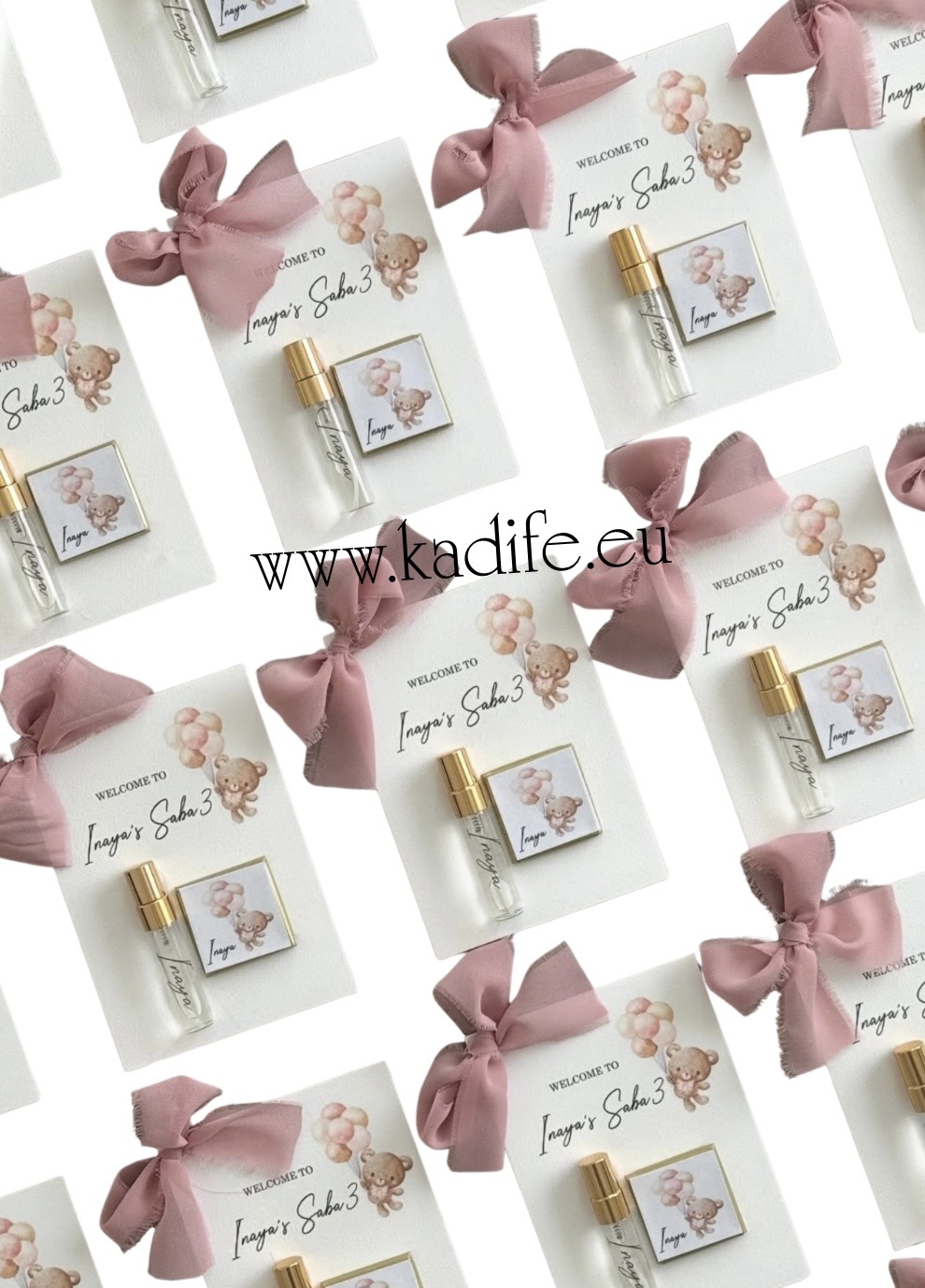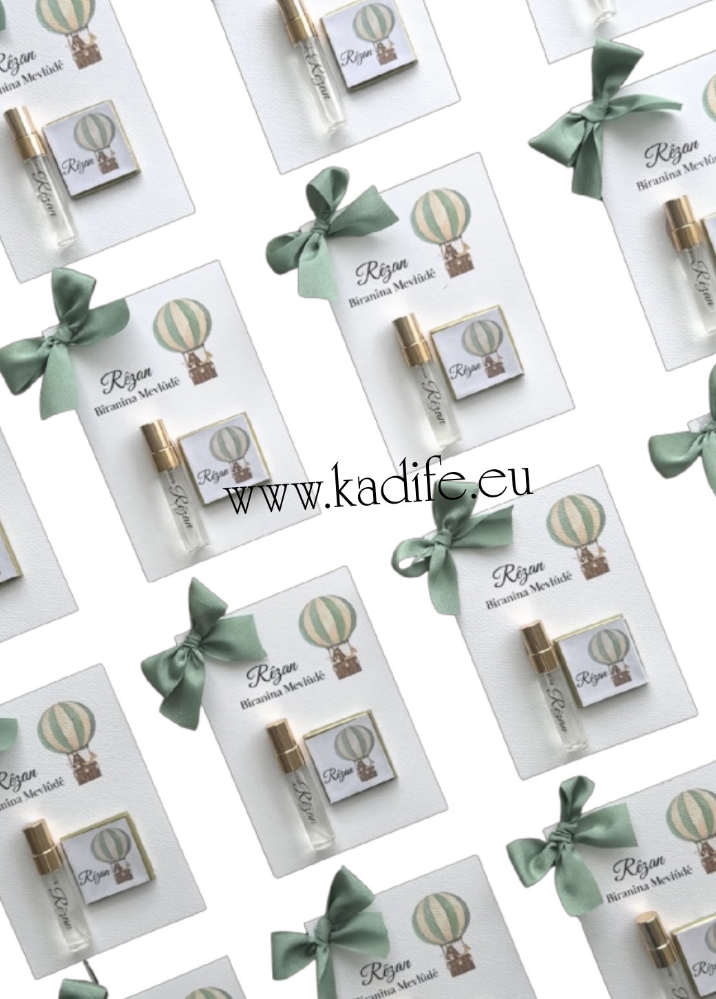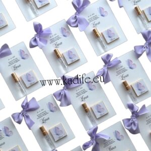 Персонализирана картичка, одеколон с надпис, белгийско шоколадчета и нежна декорация. Всичко за вашия прекрасен момент. Довери ни се!