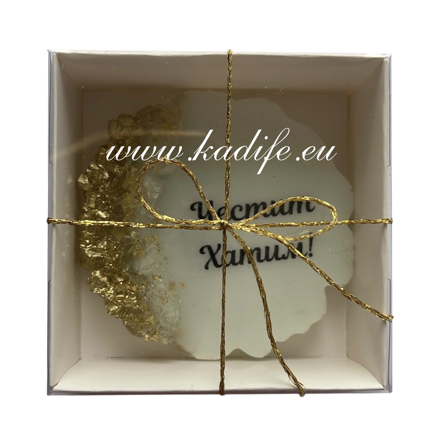 Подаръци за хатим- 3Д магнитче с камъни и надпис. Предлага се с кутия и вързулка.