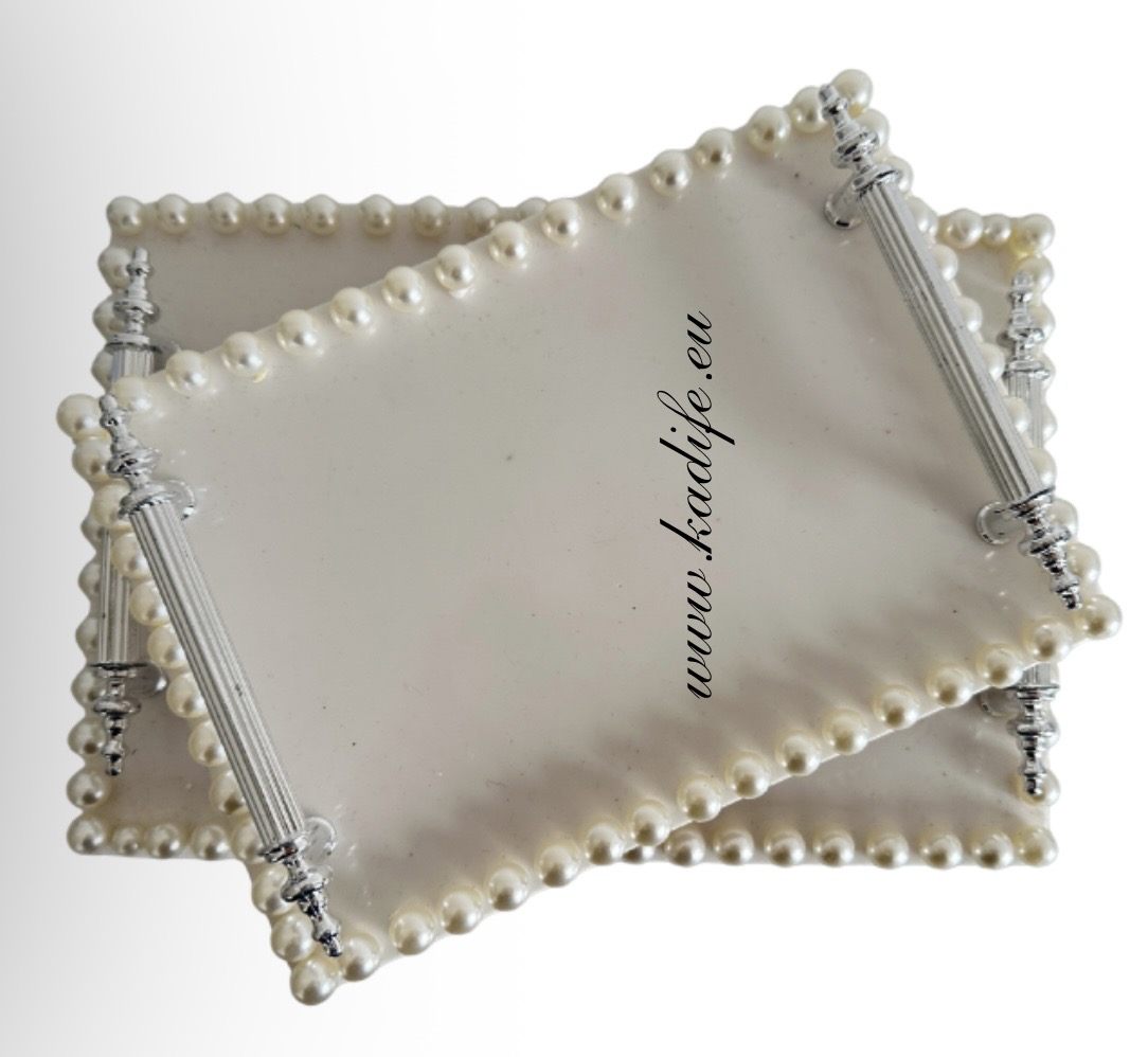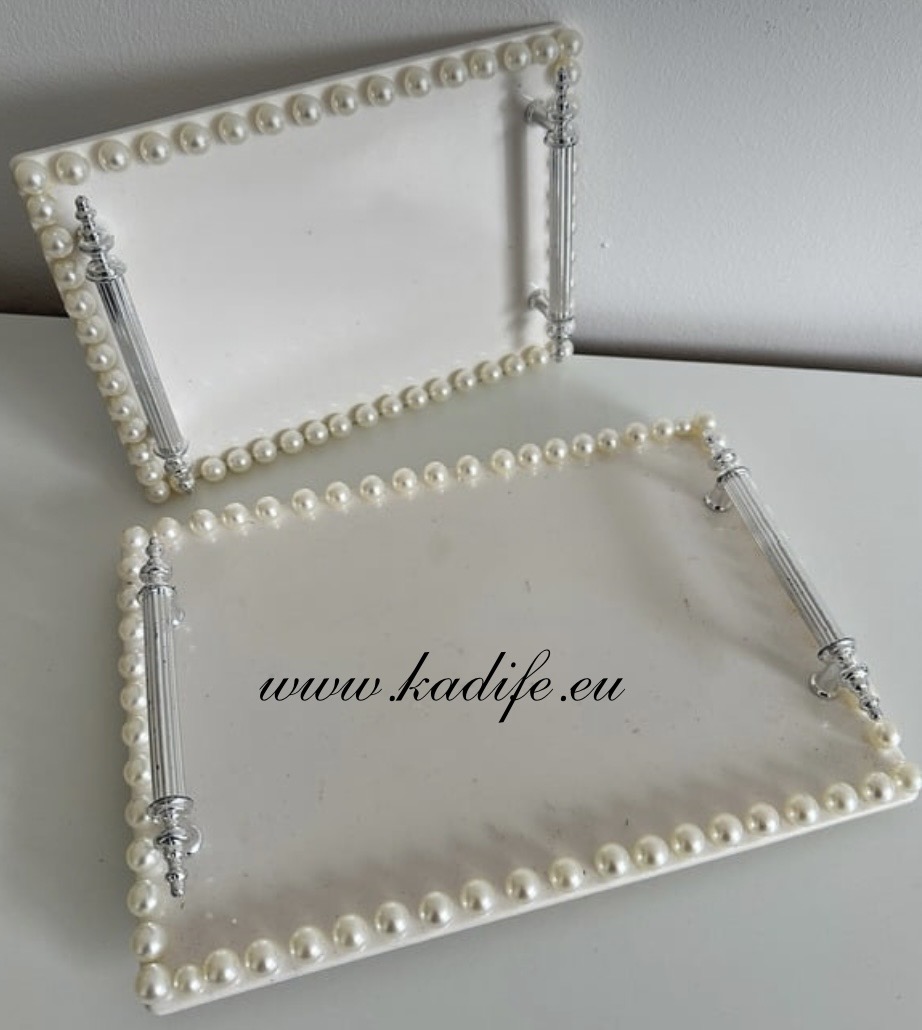 Подносът е ръчно изработен, с елегантен дизайн и декоративни елементи, които придават усещане за стил и лукс.