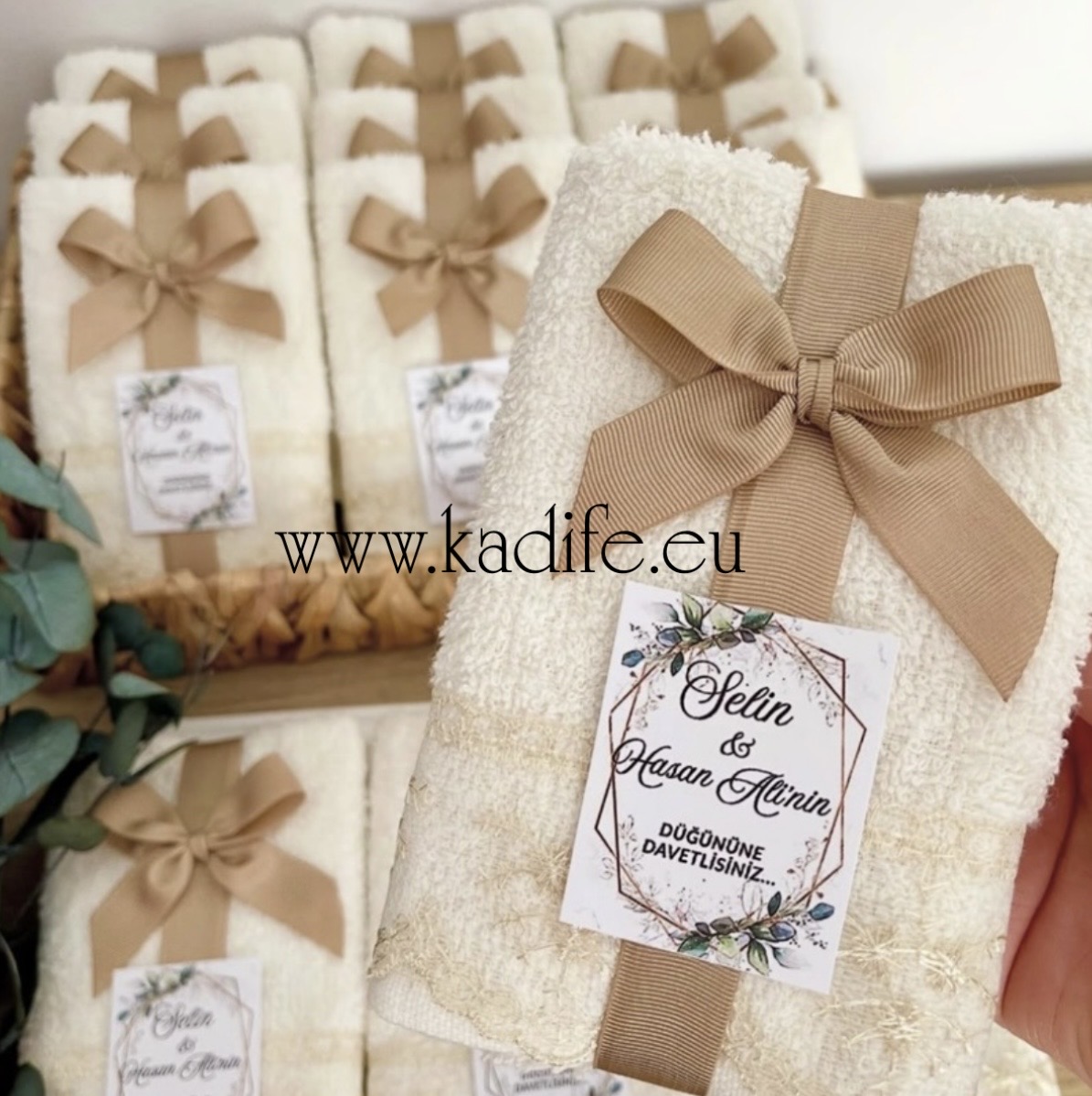 Хавлиена кърпа с размери 40/80см. декорирана като подарък за вашите празници. Моля в коментар опишете текста, ако искате тя да бъде персонализирана със стикер.